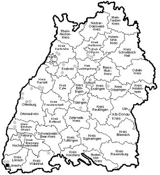 Abbildung 1: Sammelorte von Zecken und Zeckenkot in Baden-Württemberg (markiert mit Quadrat- und Kreissymbolen).