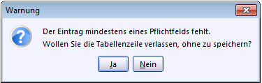 Pflichtfelder in Tabellen