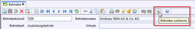 •Kürzel: Die Betriebe werden anhand des erfassten Betriebekürzels alphabetisch sortiert.