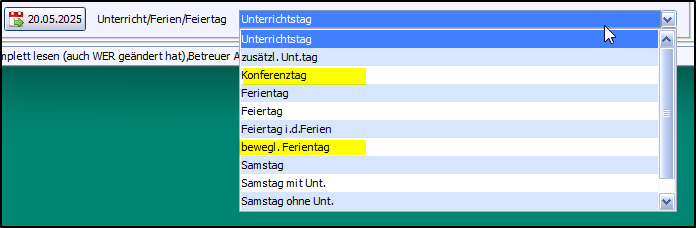 - Sofern zuerst im Kalender bewegl. Ferientage oder Konferenztage eingepflegt wurden,