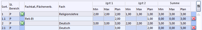 Dazu passen Sie die Auswahl der Fächer an und geben an, welches Fach in welcher Klassenstufe mit wievielen Stunden unterrichtet wird.