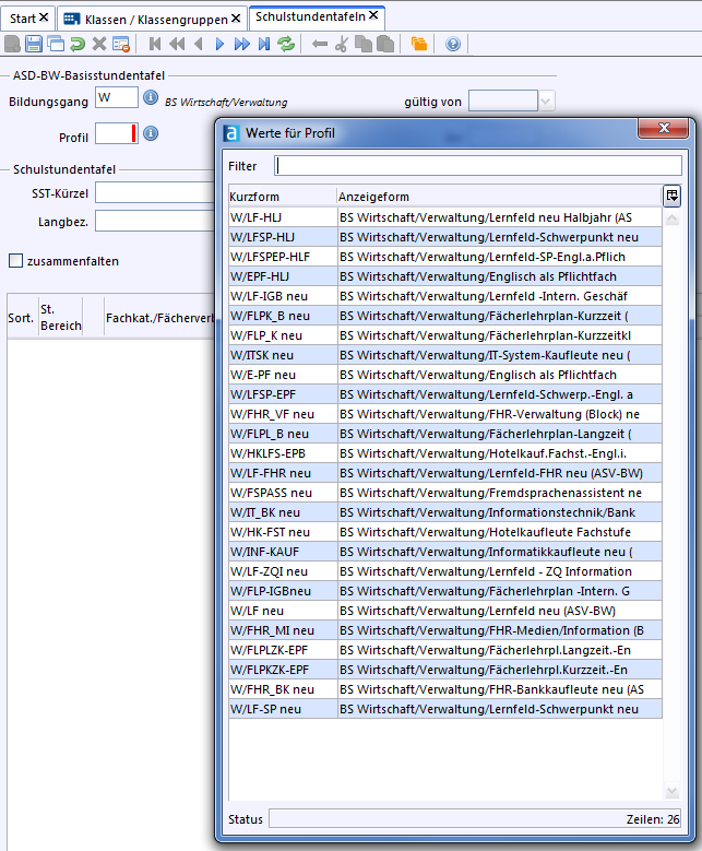 Im Modul Schulstundentafeln erstellen Sie auf Grundlage einer Basisstundentafel solche Schulstundentafeln, die Ihr konkretes Unterrichtsangebot abbilden.
