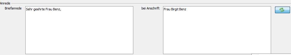 In den Eingabefelder für Anrede generieren Sie eine Briefvorlage. >Geben Sie z. B. den Text Sehr geehrte ein. >Klicken Sie anschließend auf Aktualisieren. Sie sehen nun die vervollständigte Briefanrede und die Briefanschrift. In den unteren beiden Tabellen können Angaben zur Kommunikation ergänzt werden.