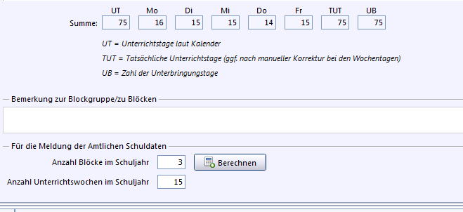 Da alle Schüler einer Klasse in den gleichen Wochen Unterricht haben, können für die jeweilige Klasse die Werte für Blockgruppe über die Schaltfläche ausgewählt werden.