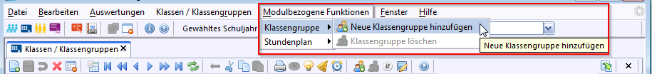 >Wählen Sie dann Modulbezogene Funktionen: Klassengruppe Neue Klassengruppe hinzufügenoder