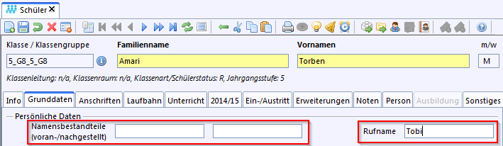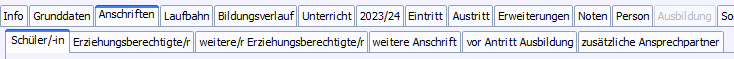 Die Laufbahndaten eines Schülers können unter dem Reiter Laufbahn im Modul Schüler angesehen werden.