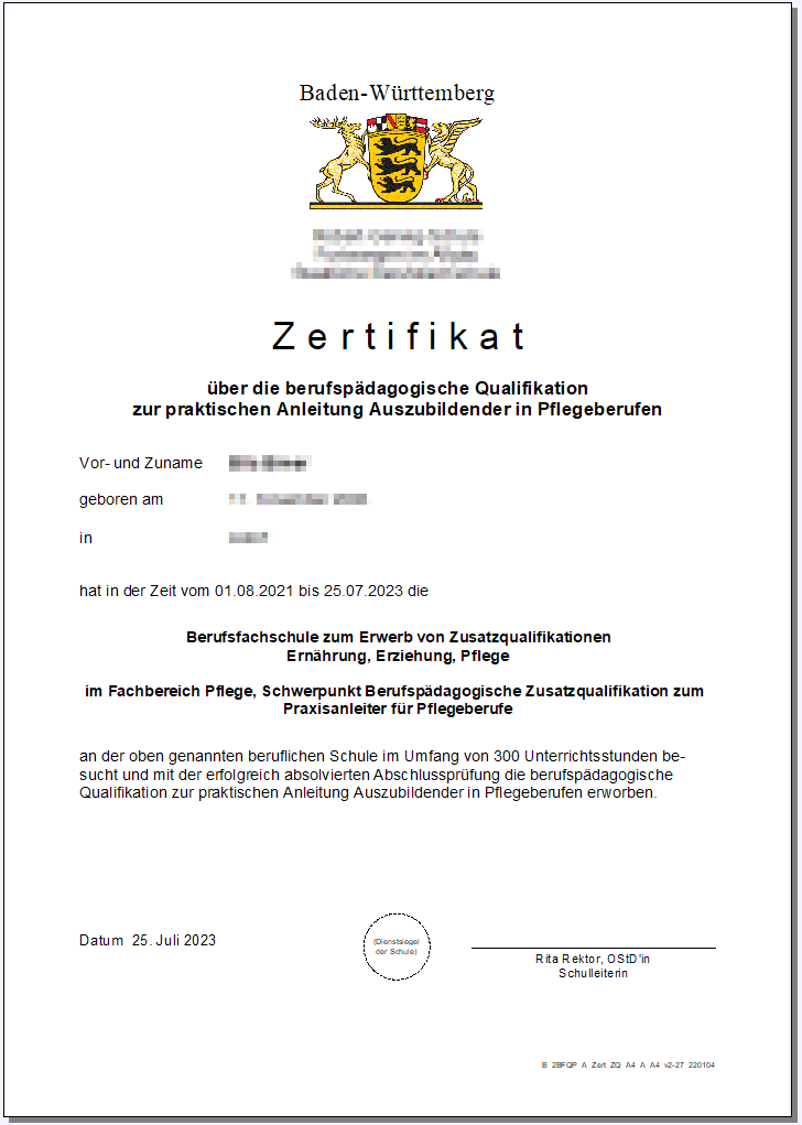 Zeugnis am Ausbildungsende / Abgangszeugnis |