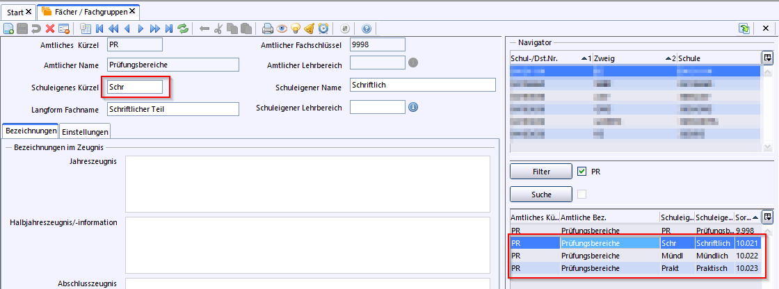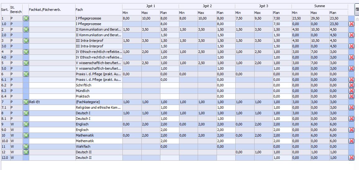 •Bildungsgänge: 3BFP, Jahrgangstufe 3; BFPL, Jahrgangstufe 4 •Modulbezogene Funktion: Fächer aus Stundentafel übernehmen: Die Fächer können sowohl aus der Stundentafel zu 3BFP als auch zu BFPL übernommen werden. •Entfernen Sie alle Fächer außer den Prüfungsteilen Schriftlich, Mündlich und Praktisch. • Fügen Sie die die Zusatzkategorien Durchschnitt 3, bestanden, Ausbildungsberuf, Bereich, Wirkdatum, Abgangsdatum und Bemerkungen hinzu. |