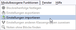 >Wählen Sie Modulbezogene Funktionen: Einstellungen importieren.