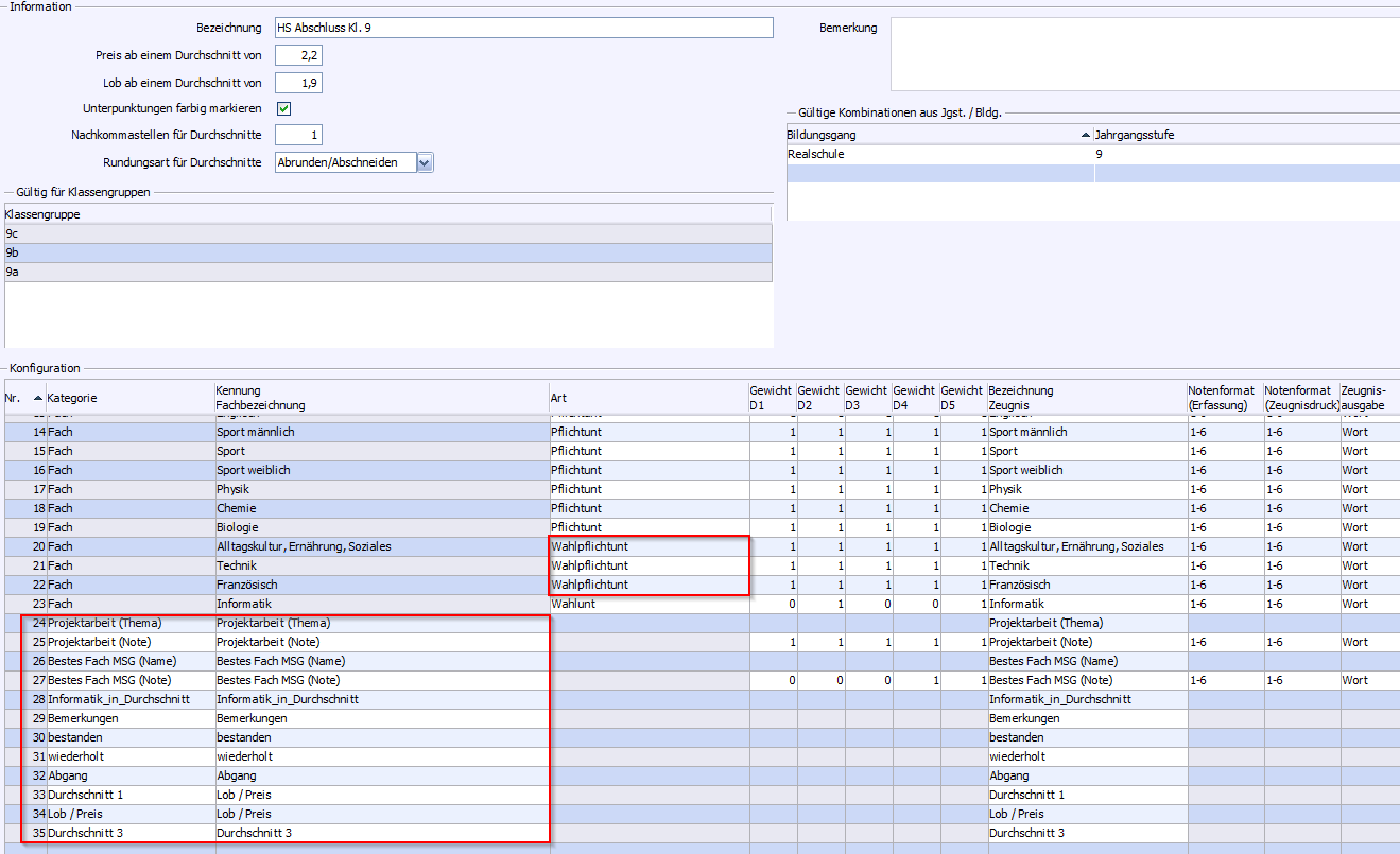 •Ggf. kann auch Durchschnitt 3 für die Berechnung der Notendurchschnitte des Schülers in den Zeugniseinstellungen aufgenommen werden.