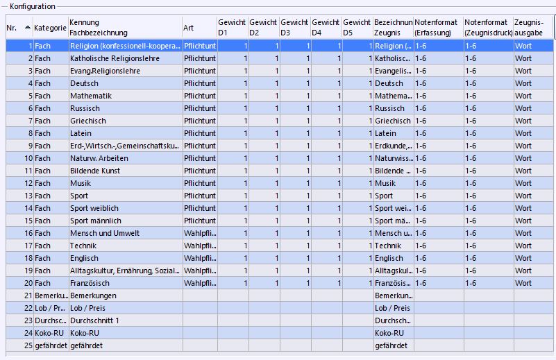 In den Zeugniseinstellungen ggf. individuell eingestellte Gewichtungen werden hier daher nicht berücksichtigt. (In NEO hingegen wird die Durchschnittsberechnung entsprechend den Zeugniseinstellungen angezeigt, entspricht daher nicht unbedingt dem Zeugnisdurchschnitt).