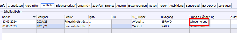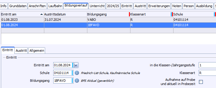 - Tritt ein Schüler erst nach bereits erfolgter Einrichtung des neuen Schuljahres ein, muss er im noch laufenden Schuljahr erfasst werden.