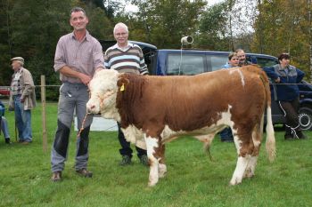 „Labeflort“ war eindeutig am besten bemuskelt. Er stammt von Mutterkuhhaltungsbetrieb Ewald Kiefer aus Fröhnd- Ittenschwand und fand seinen Käufer in Thomas Stupp (rechts) im hessischen Hünfeld