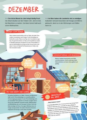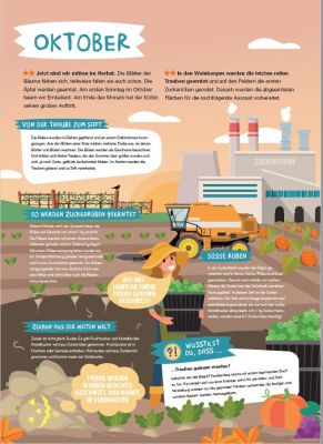Das digitale Begleitheft bietet zusätzliche Hintergrundinformationen für Lehrerinnen und Lehrer, Aktivitäten wie Betriebsbesuche, Experimente für das Klassenzimmer oder den Schulgarten, Arbeitsblätter und viele kreative Ideen an. Weiterführende Links und Hinweise auf geeignete Materialien ergänzen die Ausarbeitungen für die jeweiligen Monate.