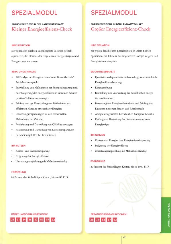 Landwirte in Baden-Württemberg, die Klarheit über Ihre betrieblichen Einsparpotentiale im Bereich Strom, Wärme und Kraftstoffe haben möchten, können derzeit geförderte Beratungsangebote vom Land Baden-Württemberg beantragen, die die Energieeffizienzberatung mit Zuschüssen von bis zu 80% unterstützen.
