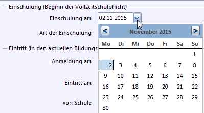 In einigen Fällen kann die Auswahl auch durch Eingabe des ersten Buchstaben erfolgen. Im obigen Beispiel Art Erziehungsberechtige wählen Sie durch Tippen des Buchstabens vsofort den Eintrag Vater aus.