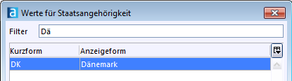 Ein Wertelistenfenster kann sich hinter einer Schaltfläche befinden, z. B. für Staatsangehörigkeit.