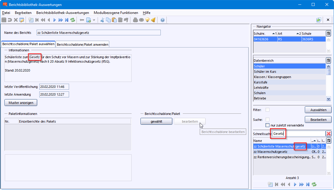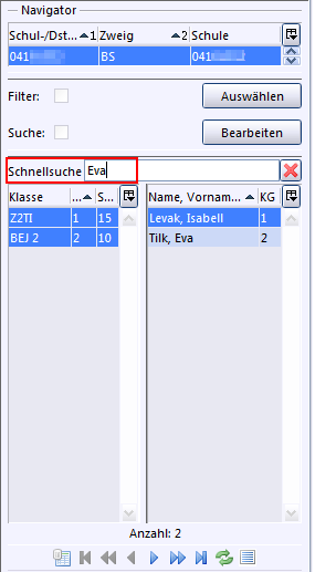 Im Schülermodul und in der Berichtsbibliothek können Sie zusätzlich die Schnellsuchfunktion nutzen.