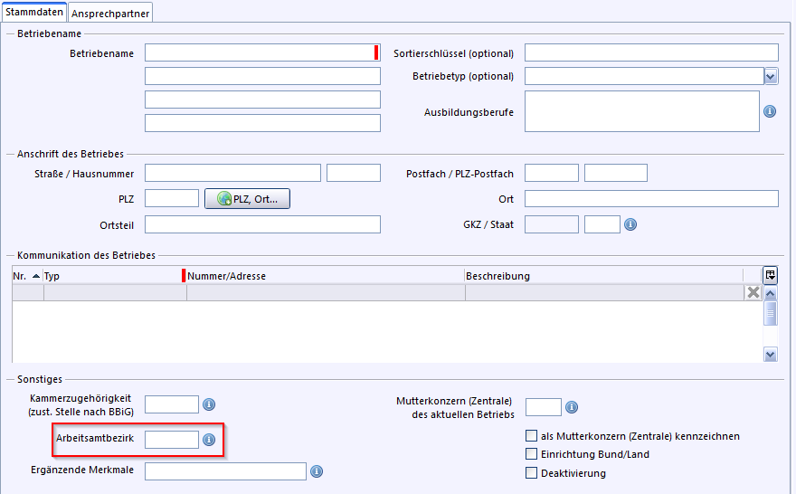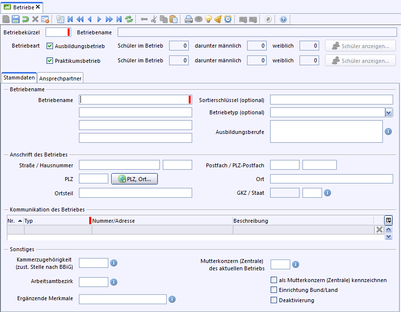 •Betriebeart: Es wird angezeigt, ob es sich um einen Ausbildungs- und/oder Praktikumsbetrieb handelt.