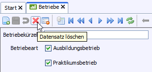 Um einen Betrieb löschen, klicken Sie auf das Symbol für Datensatz löschen.
