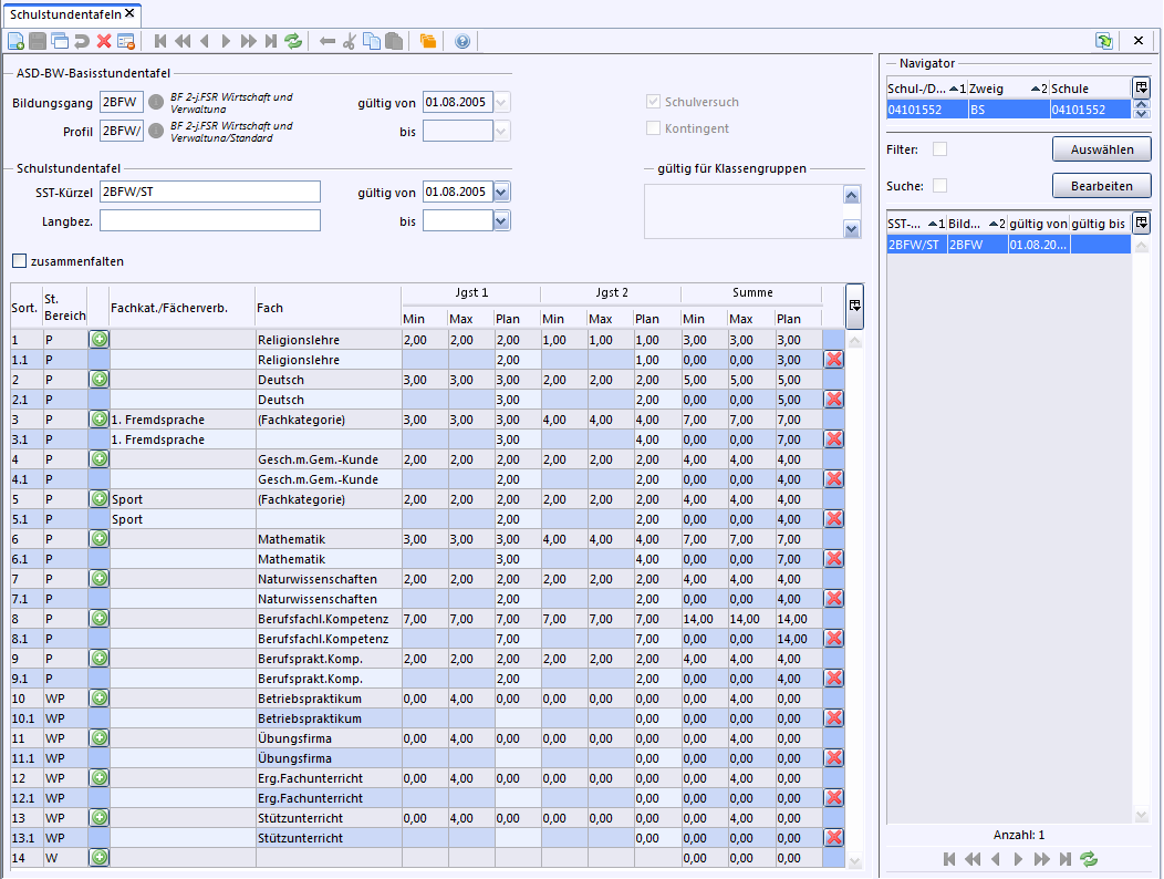 Im Modul Schulstundentafeln erstellen Sie auf Grundlage einer Basisstundentafel solche Schulstundentafeln, die Ihr konkretes Unterrichtsangebot abbilden.