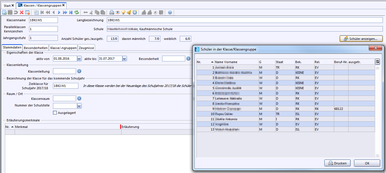 >Datei: Schulische Daten Klassen