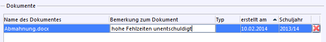 Sie können nun in den entsprechenden Spalten •Bemerkungen zum Dokument erfassen •Typ des Dokuments hinterlegen |