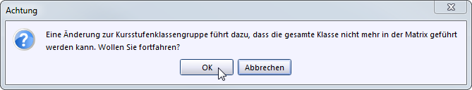 >Bestätigen Sie bei der Anlage folgende Meldung mit OK, da Kursstufenklassengruppen nicht in der Matrix, sondern der Kursliste geführt werden.