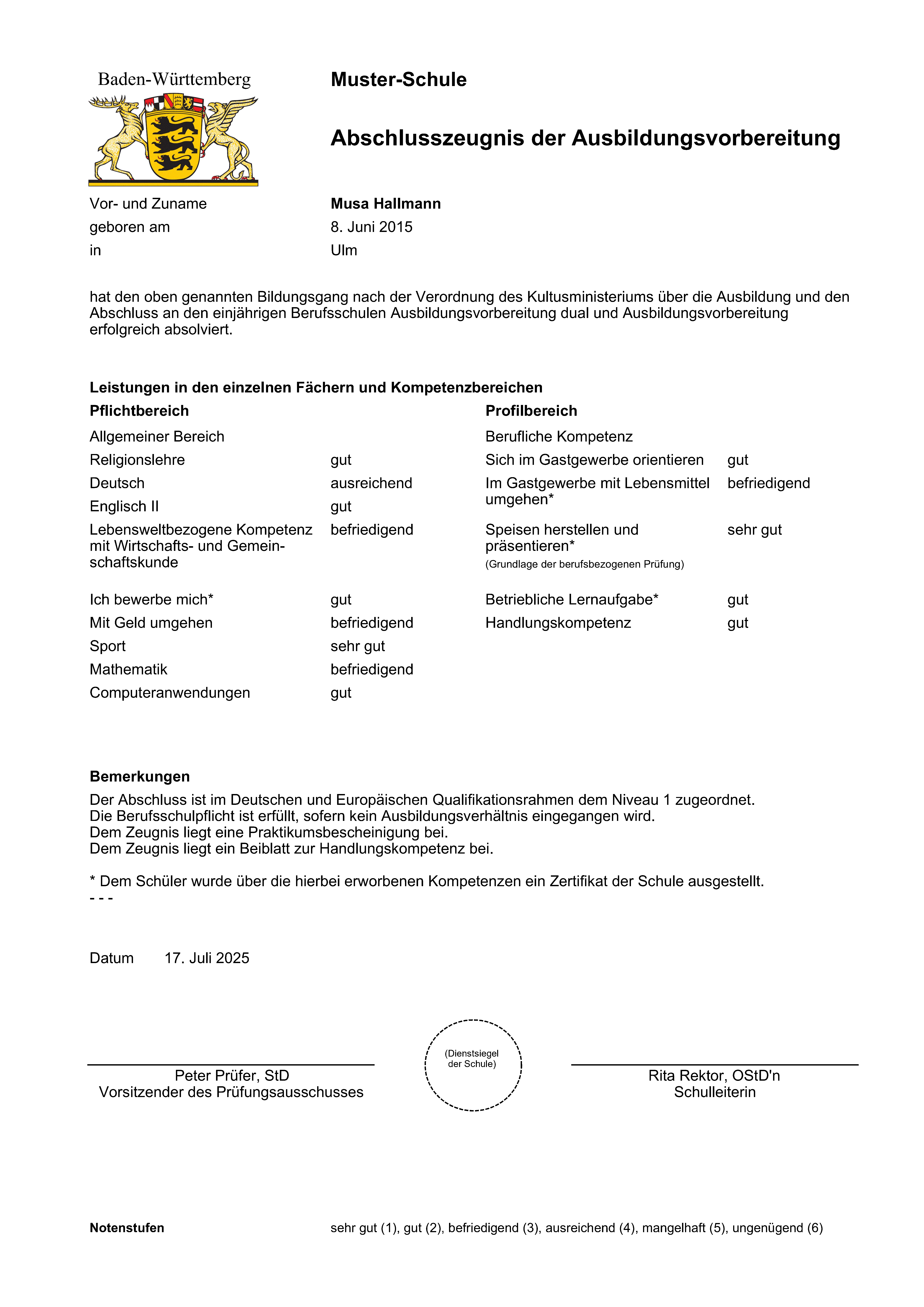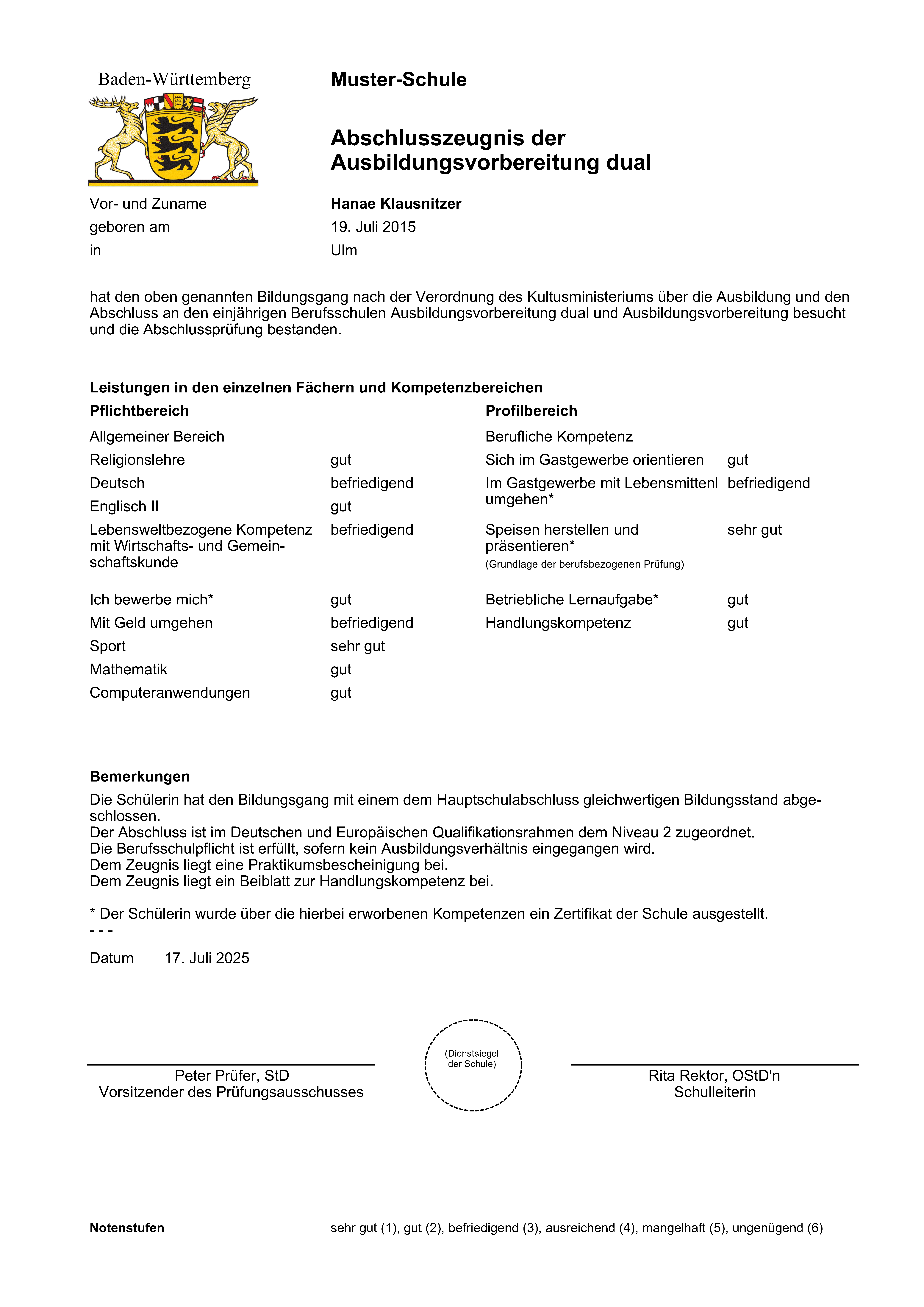 Wichtig (falls der Zeugnistitel verkehrt ist):