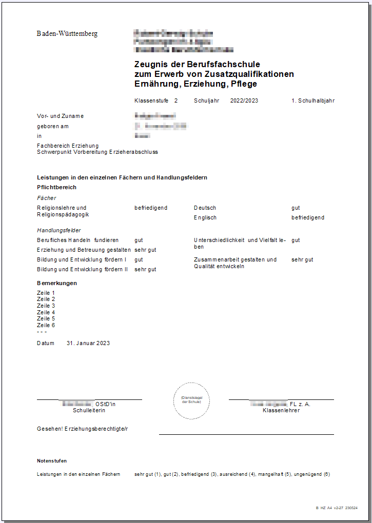 Zeugnis am Ausbildungsende / Abgangszeugnis |