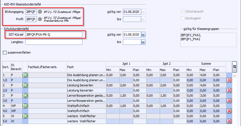 Abschluss der schulischen Ausbildung (Schulfremdenprüfung) siehe Hilfe BKSP |