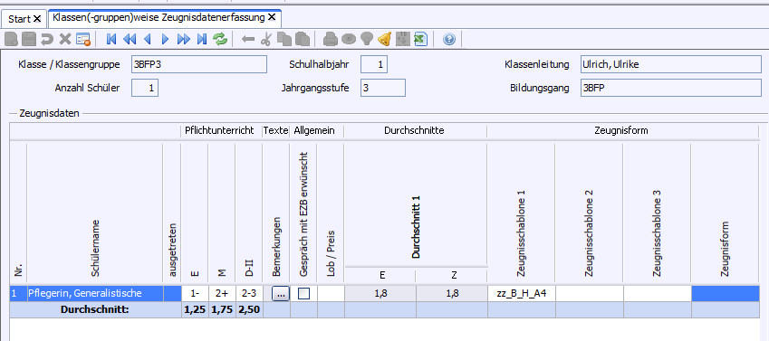 > Tragen Sie hier die Ergebnisse der Zwischenprüfung ein, sowie ggf. Bemerkungen. Als Zeugnisschablone wählen Sie bei beiden Bildungsgängen zz_B_3BFP_PR1_A4. |