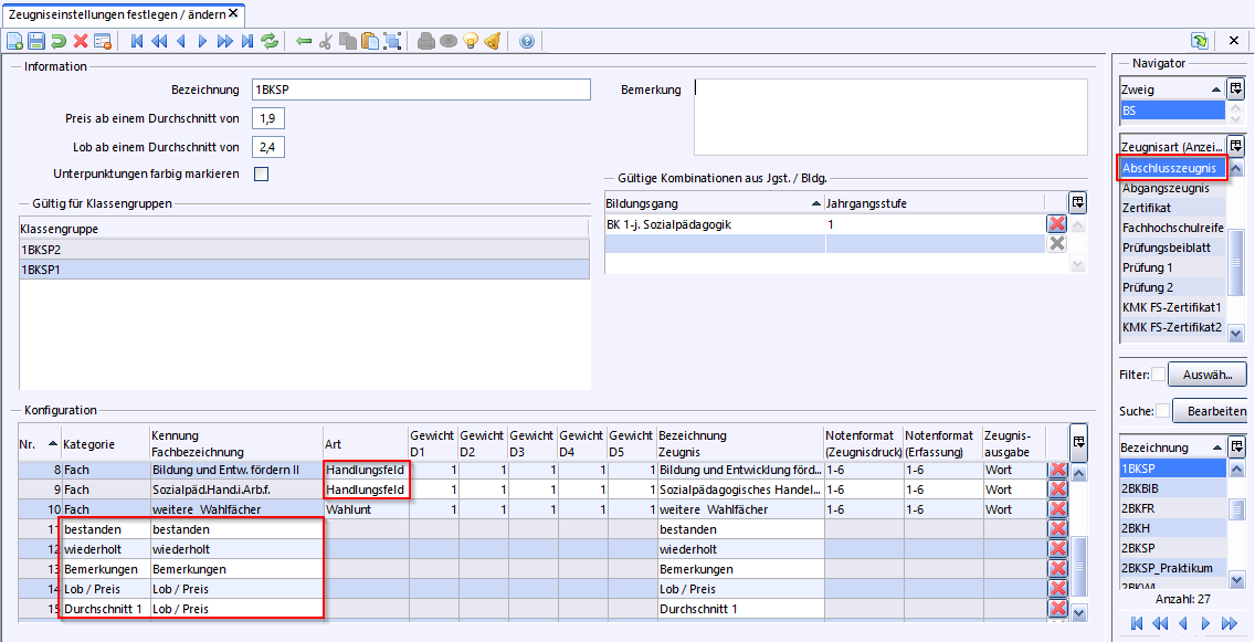 Nur wenn bestanden gesetzt ist, wird ein korrektes Abschlusszeugnis erstellt.