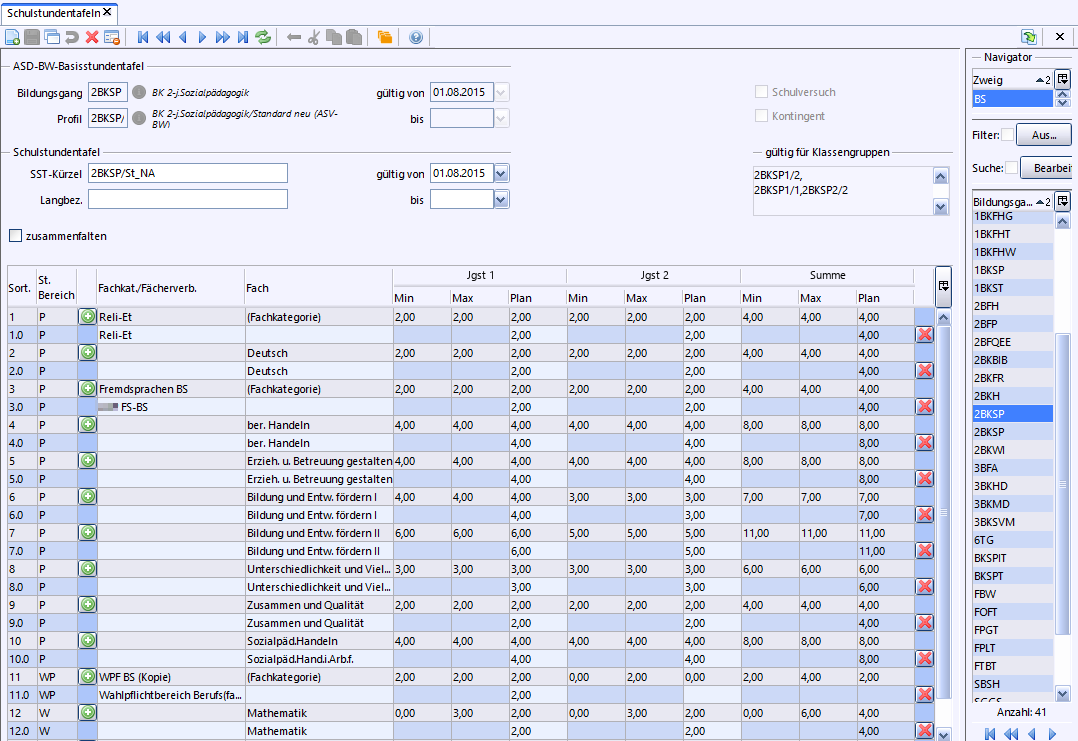 Für das Abschlusszeugnis ist eine Kopie der Schulstundentafel, die den ASA-Zeugnissen zugrunde liegt, anzulegen mit aussagekräftigem Namen, z. B. SST-Kürzel 2BKSP/Abschl BerPrkt. In dieser Schulstundentafel wird für alle Fächer, deren Noten aus dem Vorjahr übernommen werden sollen, die Stundenzahl auf 0,00 Stunden gesetzt.