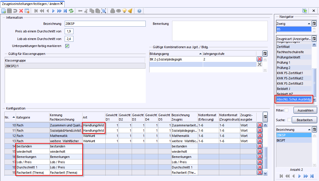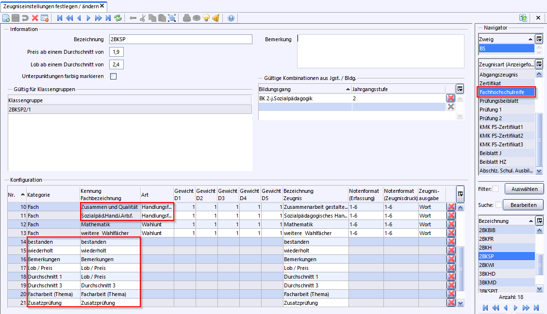 Damit der Hinweis auf § 29 (verkürztes Praktikum) erscheint, muss für Absolven-ten der BFSAID außerdem „Zusatzprüfung“ gewählt sein (auch im Bildungsgang 2BKSP möglich).