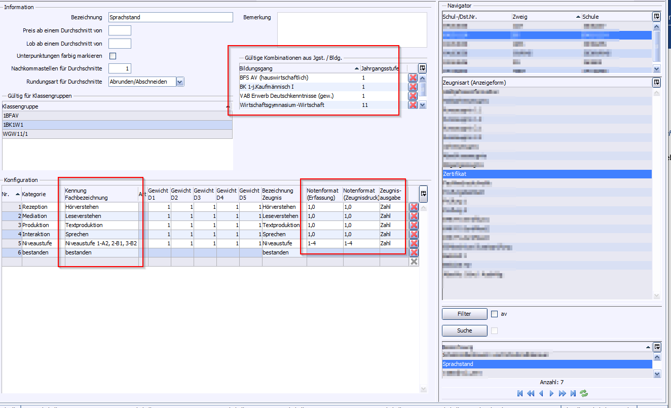 >Fügen Sie folgende Zusatzleistungen in die Zeugniskonfiguration ein: bestanden, Niveaustufe