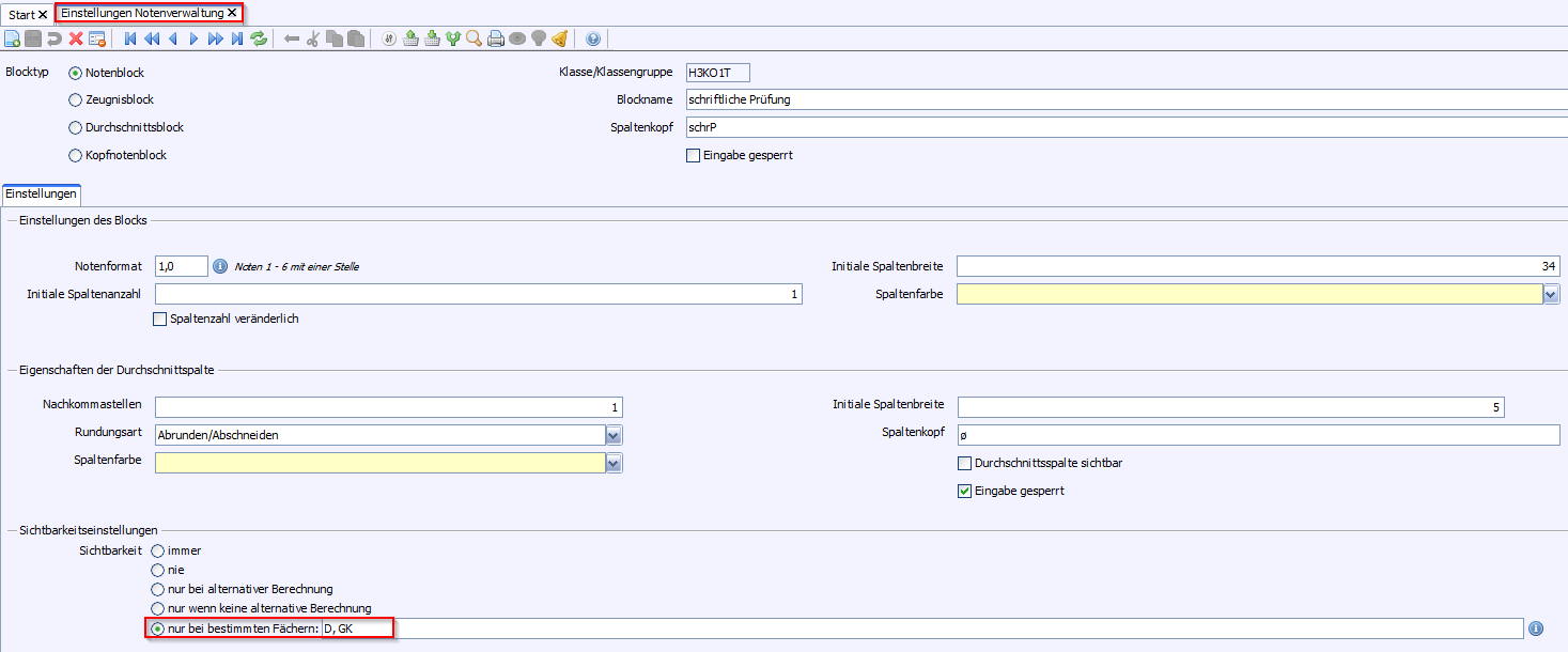 7 (In Schuljahr 2021/22) Ab Version vom 22.02.2022: Durchschnittsblöcke Dezimalnote und Prüfungsleistung, Eigenschaften der Durchschnittsspalte > Rundungsart auf Abrunden korrigiert.