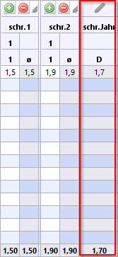 Das Format kann von ganzen Noten (1) zu Noten mit einer Nachkommastelle (1,0) und von Noten mit einer Nachkommastelle (1,0) zu Noten mit zwei Nachkommastellen (1,00) bzw. von ganzen Noten (1) zu Noten mit zwei Nachkommastellen (1,00) geändert werden.