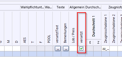 •Die Ausgabe des Versetzungsvermerks wird in der Realschule über die Zeugniskategorie versetztText gesteuert. Das Feld versetzt ist zusätzlich notwendig und zu befüllen, damit die Versetzungsangabe in Berichten korrekt ausgegeben werden kann