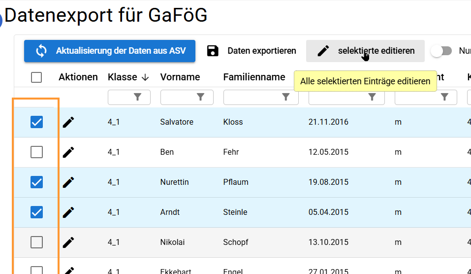 Im Datenexport aus ASV-BW werden für Grundschulen und der Primarstufe an GMS Werte vorbelegt (nicht für SBBZ und nicht für Kinder in VKL und MUSP-Klassen). Diese können bei Bedarf im DTM-Modul abgeändert werden.