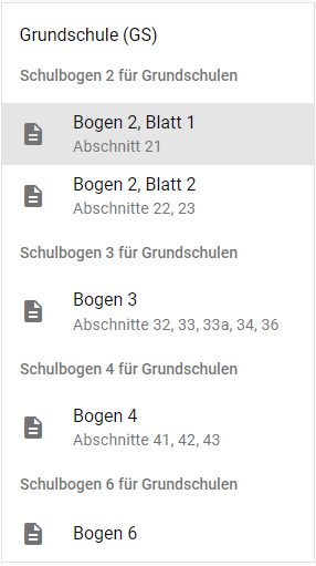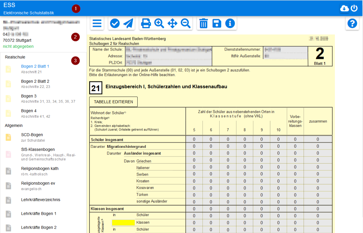 3 - Primärnavigation: Darüber rufen Sie die Statistikbögen für die gewählte Schulart auf.